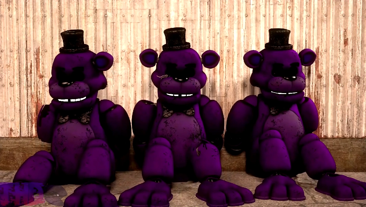 Shadow Droid Number 3 is a shadow purple bear animatronic and he also had same appearance like Freddy but had some of soot, and he had no eyes just only dark eyes and he also had white glow teeth, and he notably had lost his left hand, His stomach is had a written white number is 3.